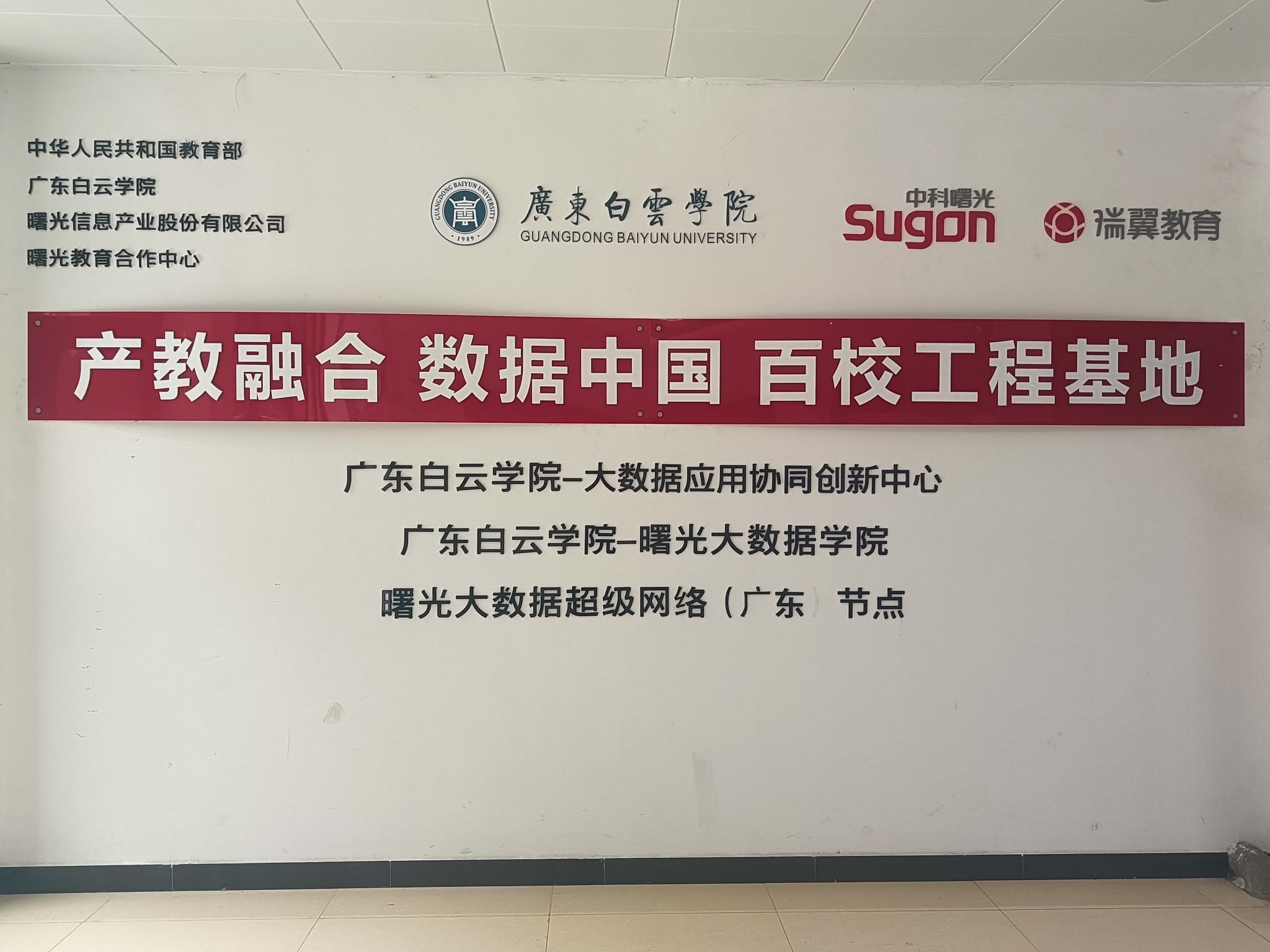 大数据应用协同创新中心是东白云学院与中科曙光投入1000万元,由教育部学校规划建设发展中心、中科曙光与广东白云学院共建的“产教融合、数据中国、百校工程”创新基地。
